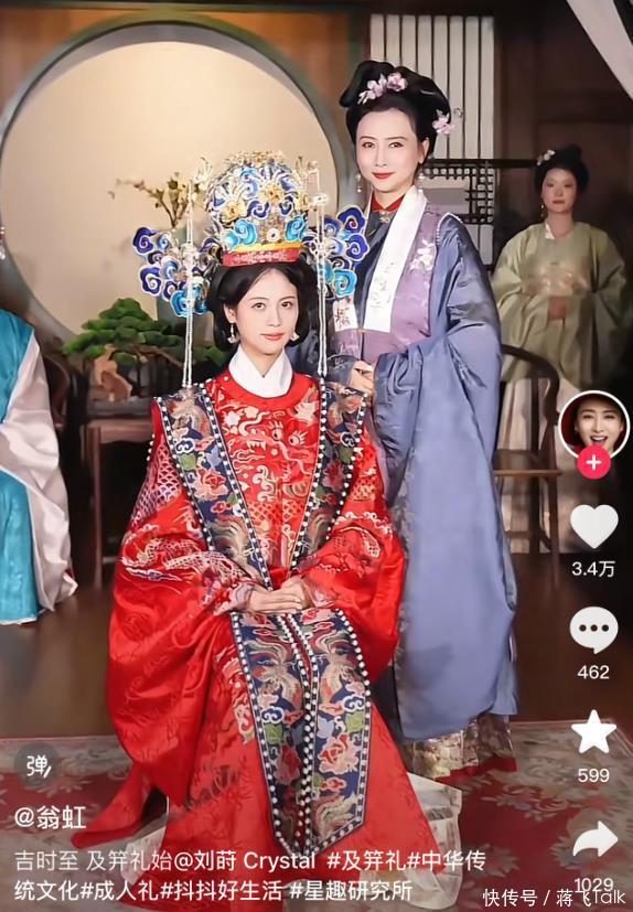当她穿戴完整的那一刻,眼睛微闭,完全就是古装剧女主角的样子。 翁虹坐在家长席位,目露慈祥地看着长大成人的女儿,满是欣慰和肯定。 这一幕,像极了是在演电视剧。
