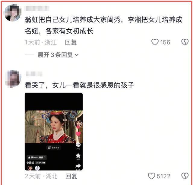 虽然翁虹表示没有办法完全还原,但即便如此,仍旧让大家震撼。 有朋友还在评论里提到李湘的女儿,说翁虹把女儿培养成了 “大家闺秀” ,李湘则是把王诗龄培养成了 “名媛” 。